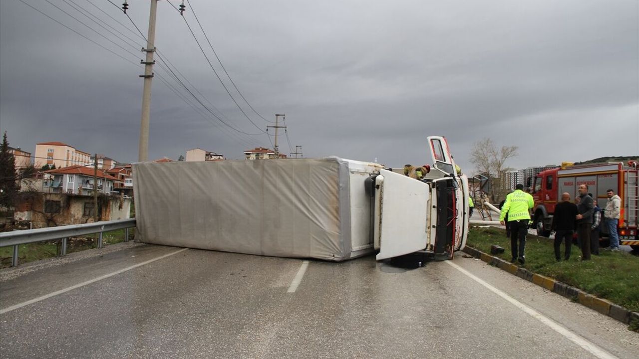 Bir süre trafiğe kapatılan yol, kamyonun kaldırılması ve temizlik çalışmalarının ardından tekrar açıldı.