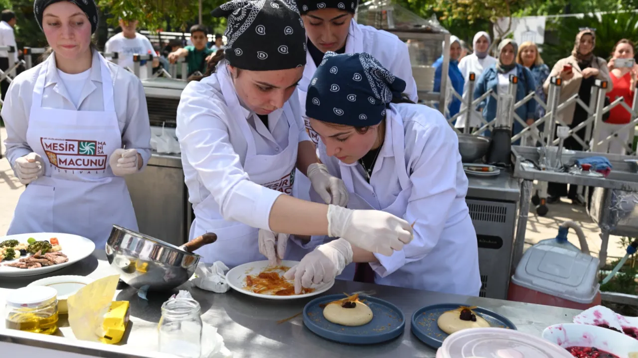 485’inci Uluslararası Manisa Mesir Macunu Festivali Gastronomi Panayırı’nda Liseler Arası Yemek Yarışması düzenlendi. Manisa’nın yöresel tescilli ürünleri mesir macunu, asma yaprağı, üzümüyle hazırlanan yemeklerin yarıştığı heyecan ve lezzet dolu yarışmanın kazananı, Salihli Hafsa Sultan Kız Mesleki ve Teknik Anadolu Lisesi oldu.MANİSA (İGFA) - Bülent Koşmaz Parkı’nda kurulan Gastrononi Panayırı, keyifli bir organizasyona sahne oldu. Meslek liselerinde yemek alanında eğitim gören öğrencilerinden oluşan takımlar, en güzel yemeği yapmak için mücadele etti. Jüri değerlendirmesi sonrası Salihli Hafsa Sultan Kız Mesleki ve Teknik Anadolu Lisesi birinci, Gördes Mesleki ve Teknik Anadolu Lisesi ikinci, Demirci Gevher Nesibe Mesleki ve Teknik Anadolu Lisesi üçüncü, Zeynep Gülin Öngör Kız Mesleki ve Anadolu Teknik Lisesi dördüncü oldu.
