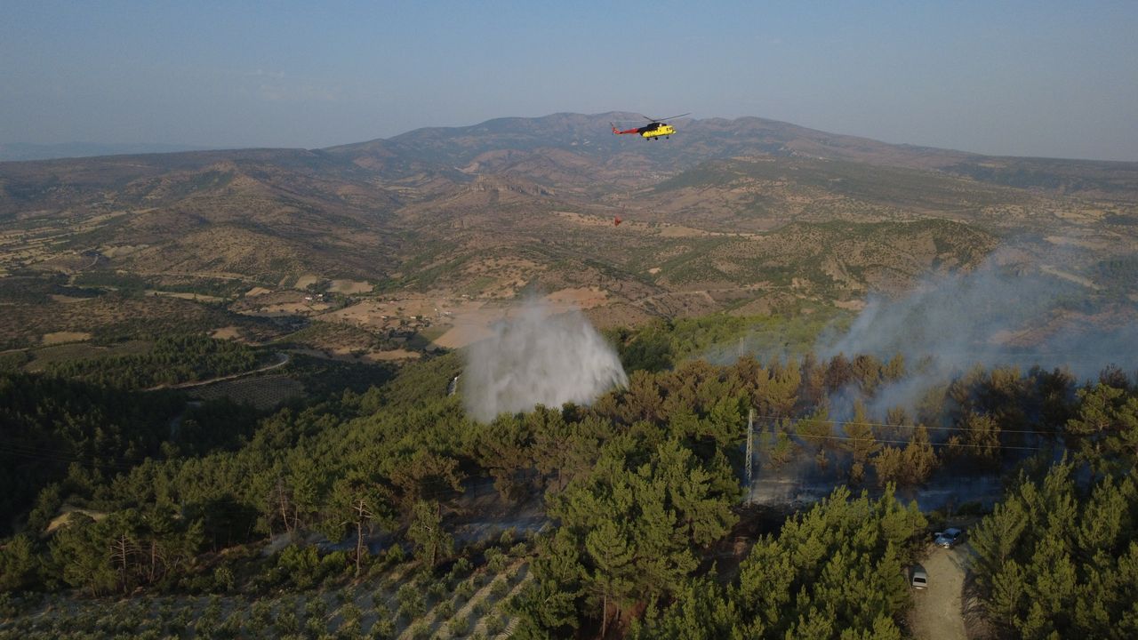 İhbar üzerine yangına, İzmir Orman Bölge Müdürlüğüne bağlı 3 helikopter, 2 uçak, 15 arazöz, 4 itfaiye aracı ve 5 su tankeriyle müdahale edildi.