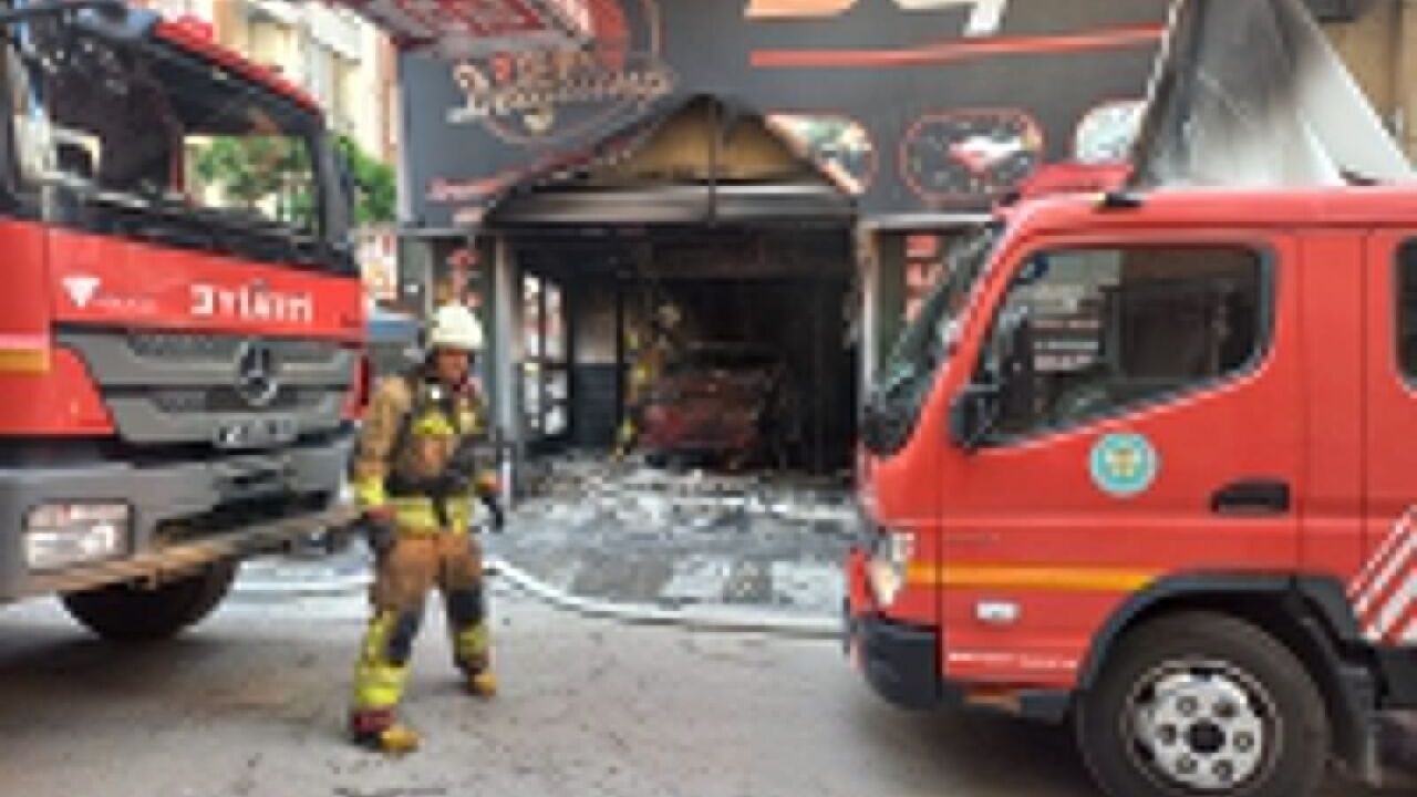 Kısa sürede büyüyen alevler, iş yerinin içinde bulunan otomobili de sardı.