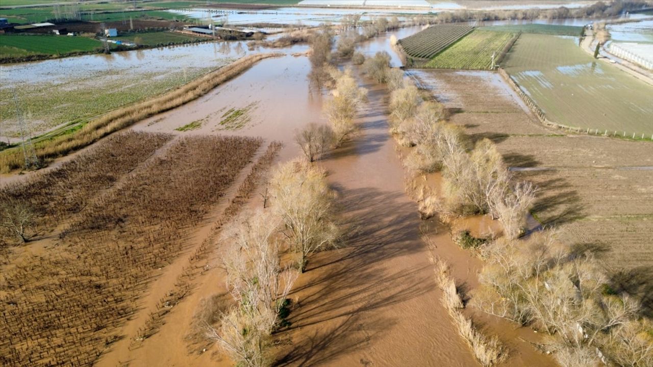 Manisa ve Menemen Ovası'nın önemli su kaynaklarından Gediz Nehri'nin debisi yükseldi, nehrin taşması sonucu çevredeki üzüm bağları ve tarım arazileri su altında kaldı.