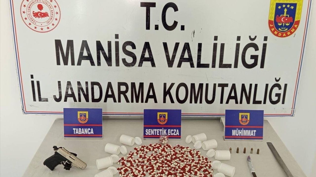 Belirlenen adreslerde yapılan aramada, 516 sentetik ecza hap ile pala, bıçak ve kurusıkı tabanca ele geçirildi.