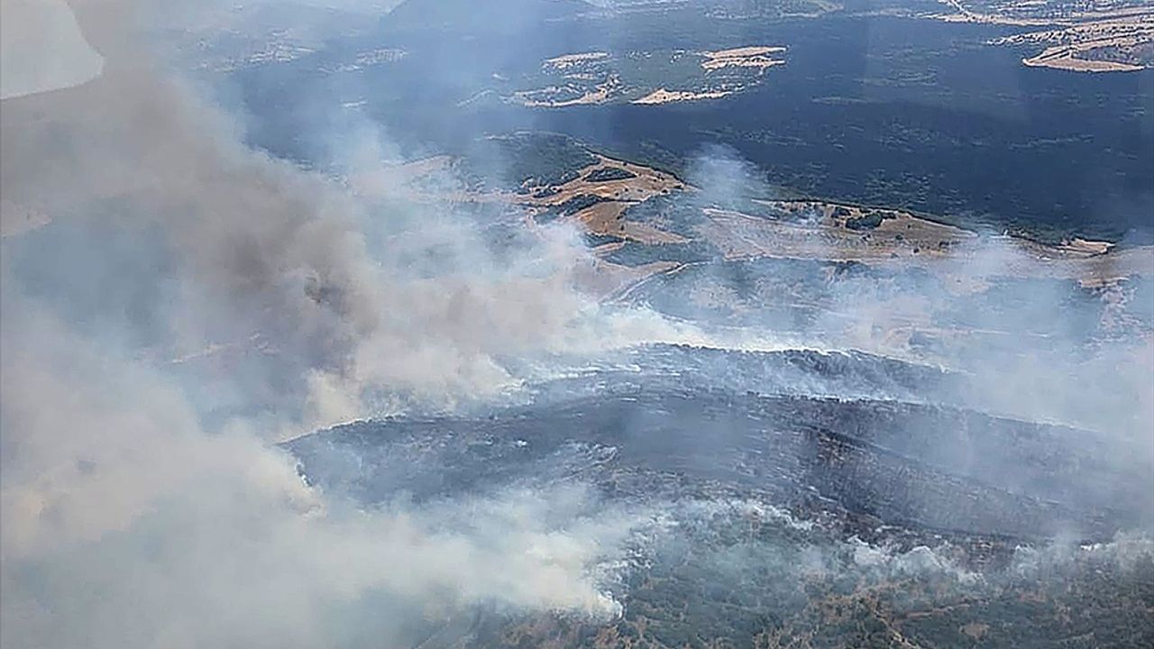 MANİSA (AA) - Manisa'nın Kula ilçesinde çıkan orman yangınına ekipler havadan ve karadan müdahale ediyor.