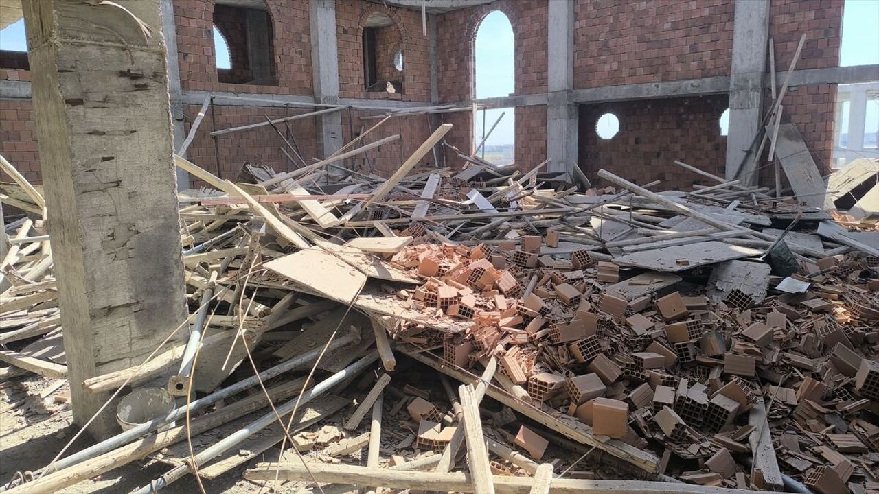Çatalözü Mahallesi'nde yapımı süren cami inşaatının iskelesinde çökme meydana geldi.