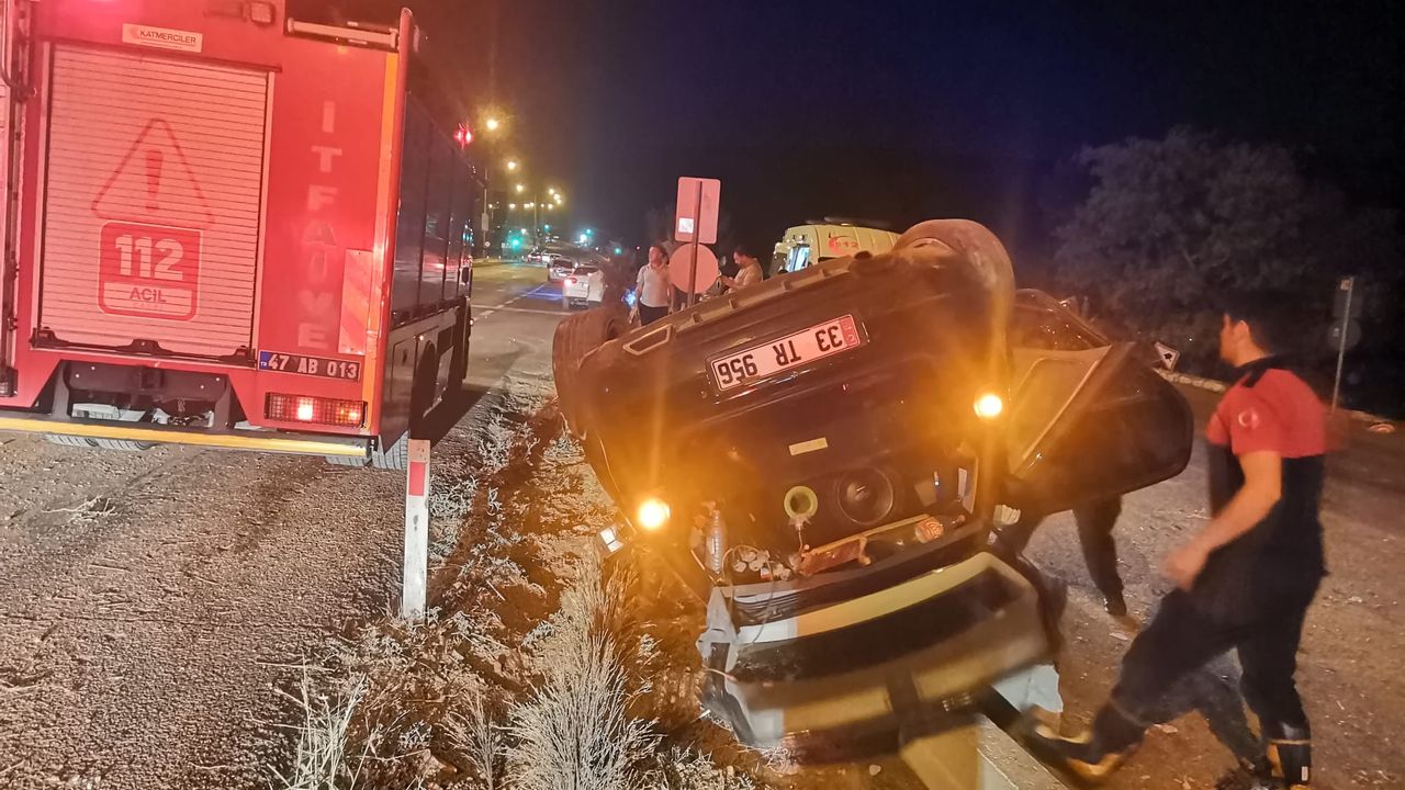 Sürücüsünün ismi henüz öğrenilemeyen 33 TR 956 plakalı otomobil, gece saatlerinde İstasyon Mahallesi mevkisinde refüje çarparak devrildi.