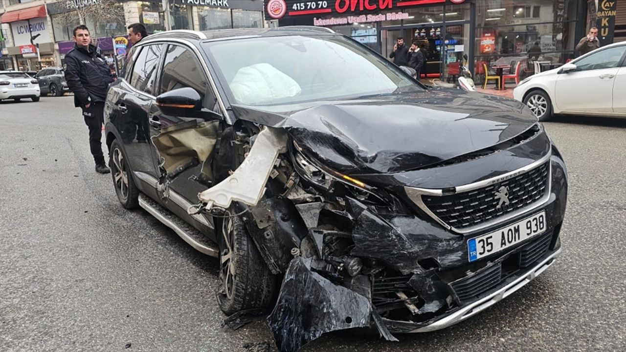 35 AOM 938 plakalı SUV tipi araç ile 23 AAL 415 plakalı otomobil, Cumhuriyet Caddesi'nde çarpıştı.