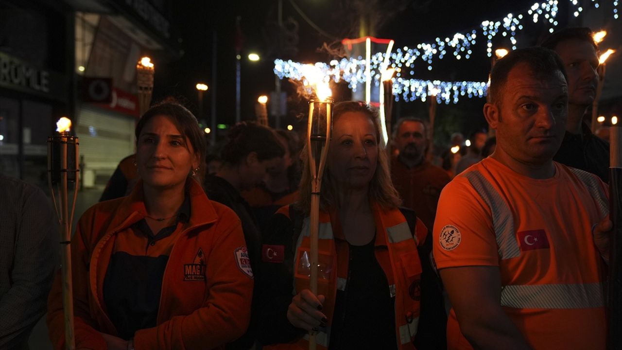 Marmara Caddesi'nde Avcılar Belediyesi ile Avcılar Kent Konseyi'nin düzenlediği programda Mahalle Afet Gönüllüleri Acil Müdahale Derneği (MAK) üyeleri ve protokol ellerinde meşalelerle deprem anıtına kadar yürüdü.