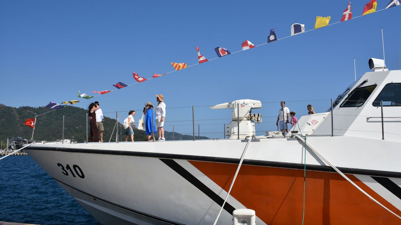 Marmaris Yat Limanı'nda bağlı bulunan TCSG-310 botu, gün boyu vatandaşlar tarafından ziyaret edilip gezildi.