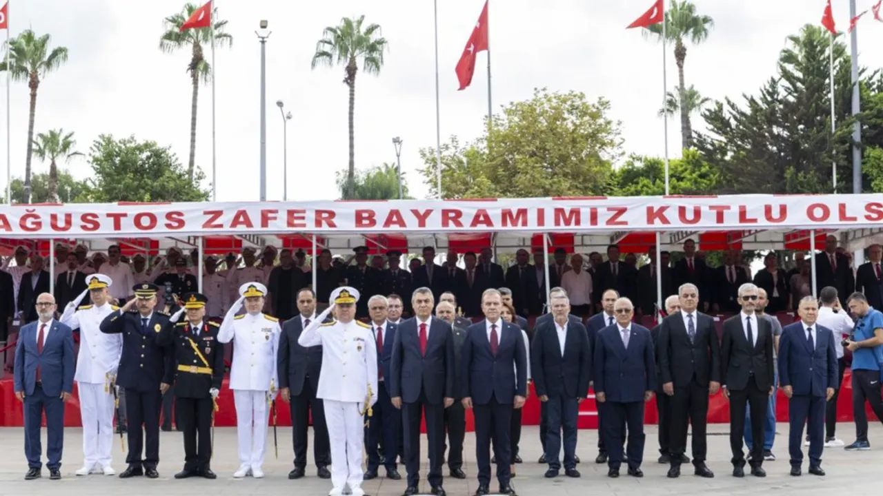 Türkiye Belediyeler Birliği Başkan Vekili (TBB) Mersin Büyükşehir Belediye Başkanı Vahap Seçer ile Meral Seçer, 30 Ağustos Mersin’deki Zafer Bayramı kutlamalarına katıldı.MERSİN (İGFA) - Mersin Valiliği tarafından düzenlenen kutlama programları Cumhuriyet Meydanı’nda Atatürk Anıtı’na çelenk sunulması ile başladı. Tören sonrası Başkan Seçer; Mersin Valisi Atilla Toros ve Akdeniz Bölge ve Garnizon Komutanlığı adına Tuğamiral Salim Kalender ile birlikte Kültür Merkezi Şeref Salonu’ndaki Tebrikat Töreni’ne katılarak, tebrikleri kabul etti. Tebrikat Töreni’nin ardından Mersin’de 30 Ağustos Zafer Bayramı kutlamaları, coşkulu ve gurur dolu anlara sahne oldu. Başkan Seçer, Mersin Valisi Atilla Toros ve Tuğamiral Salim Kalender, halkın ve törene iştirak eden kent protokolünün bayramını kutladılar.