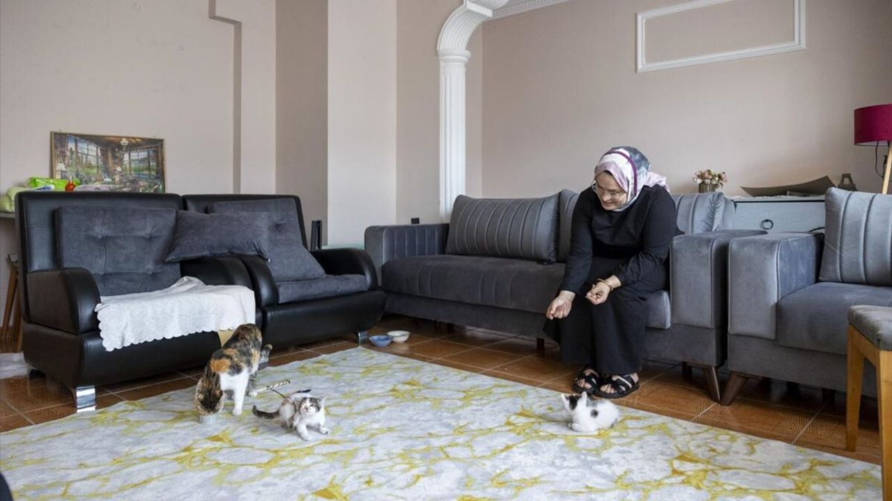Anne kediyi kalıcı, yavrularını da geçici olarak sahiplenen Kısmet Efetürk, bir aydır kedilere sevgiyle baktığını belirtti.