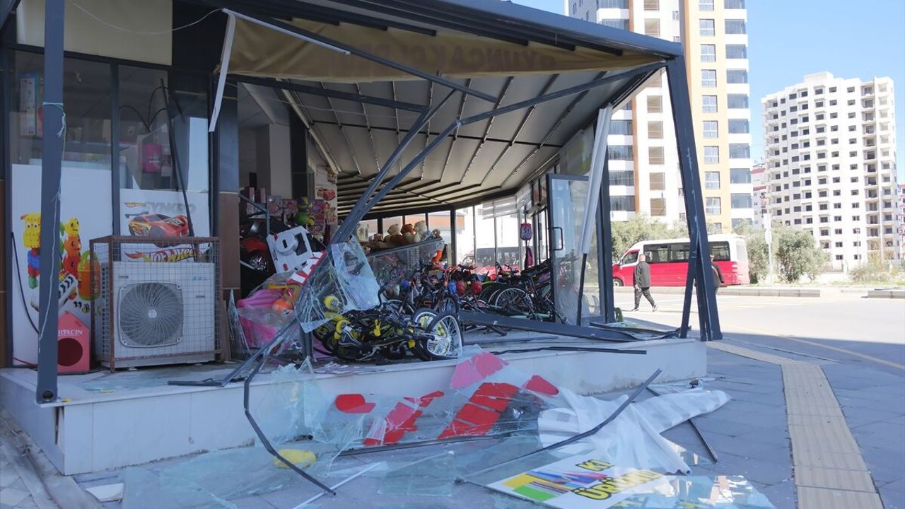 MERSİN (AA) - Mersin'in Mezitli ilçesinde hafif ticari araç ile çarpışan minibüsün oyuncak dükkanına girmesi güvenlik kamerasınca kaydedildi.