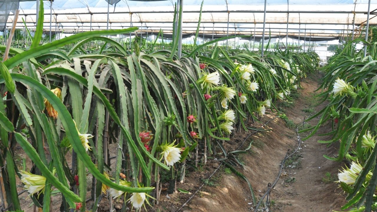 İlçede yaş meyve ve sebze ürünlerine alternatif olması amacıyla yaklaşık 150 dönümlük örtü altında yetiştirilen ejder meyvesinde hasat dönemi başladı.
