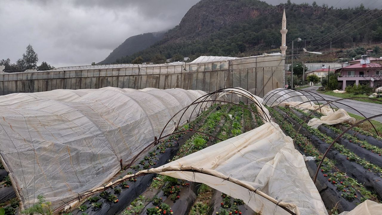 Bozyazı ilçesinde akşam saatlerinde oluşan hortumda bazı çilek ve muz seraları zarar gördü.