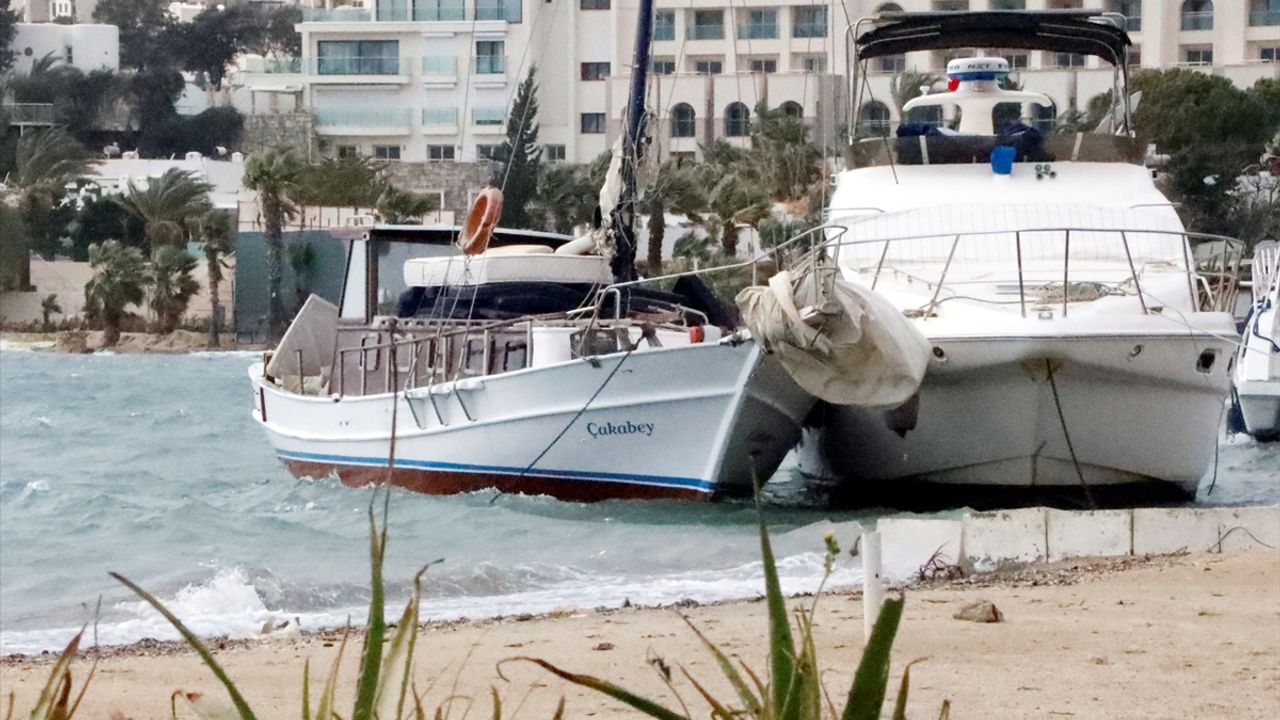 Gümbet sahilinde ikisi yelkenli, ikisi de motoryat olmak üzere 8 tekne bağlı bulundukları yerden ayrılarak kıyıya sürüklendi.