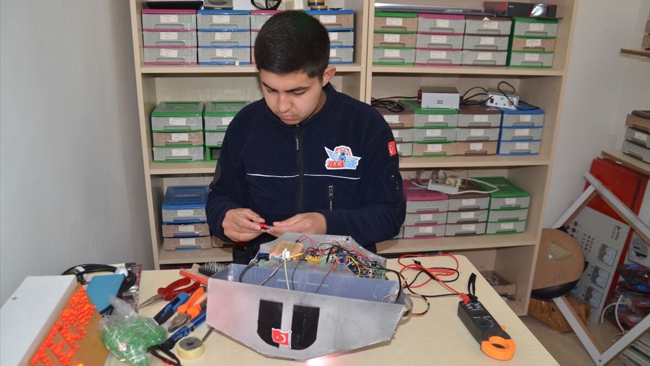 MUŞ (AA) - Muş Özel Bilim Teknik Koleji öğrencisi Serkancan Toktaş, okulun müdür yardımcısı ve proje danışmanı İlyas Güngör'ün desteğiyle "Akıncı Zırhlı Mayın Tespit Aracı" tasarladı.