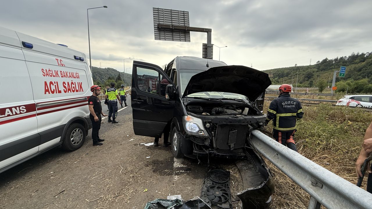 DÜZCE (AA) - Anadolu Otoyolu'nun Düzce kesiminde müzisyen Çağan Şengül ve vokal grubunu taşıyan minibüsün bariyerlere çarpması sonucu 7 kişi yaralandı.