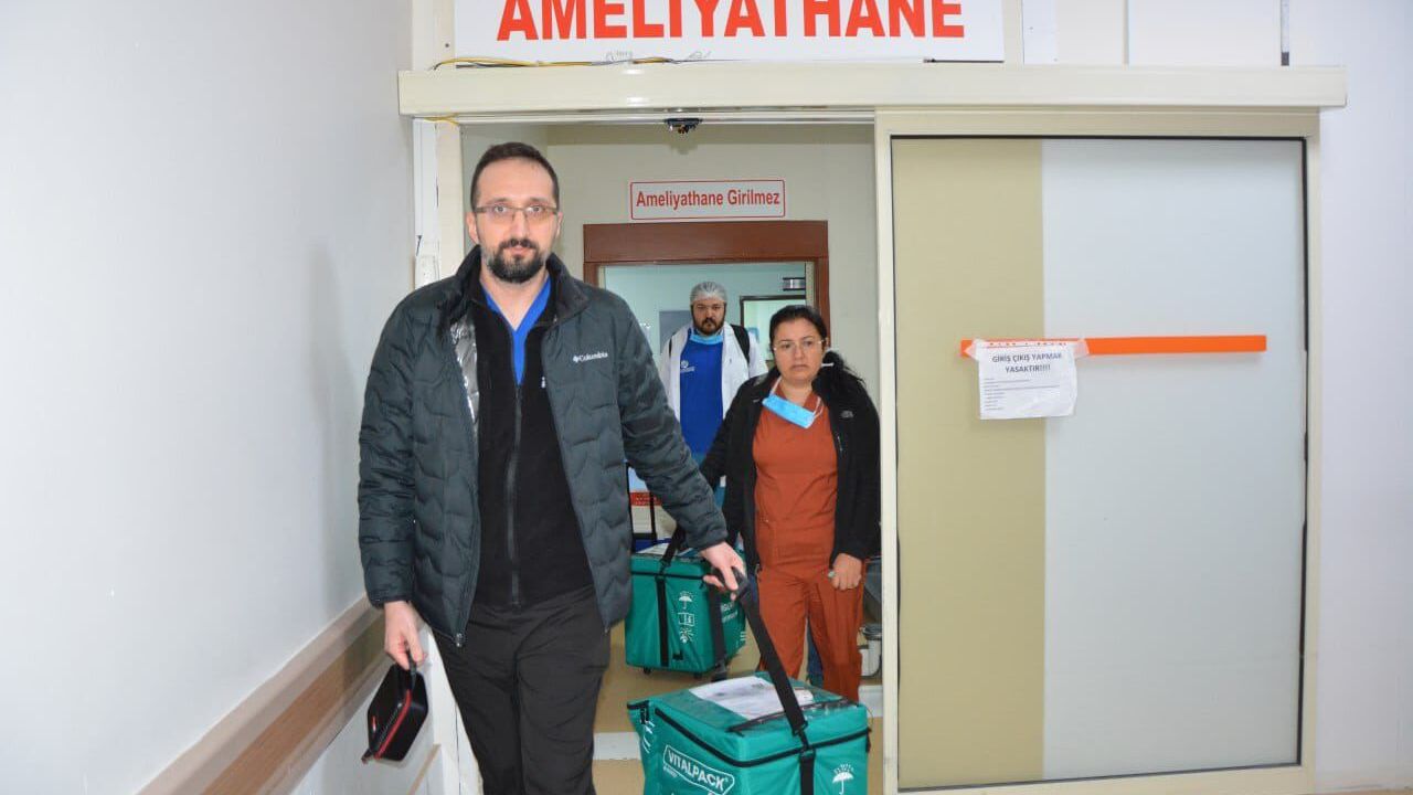 Ankara'dan gelen transplantasyon ekibi, operasyonla hastanın böbreklerini aldı.