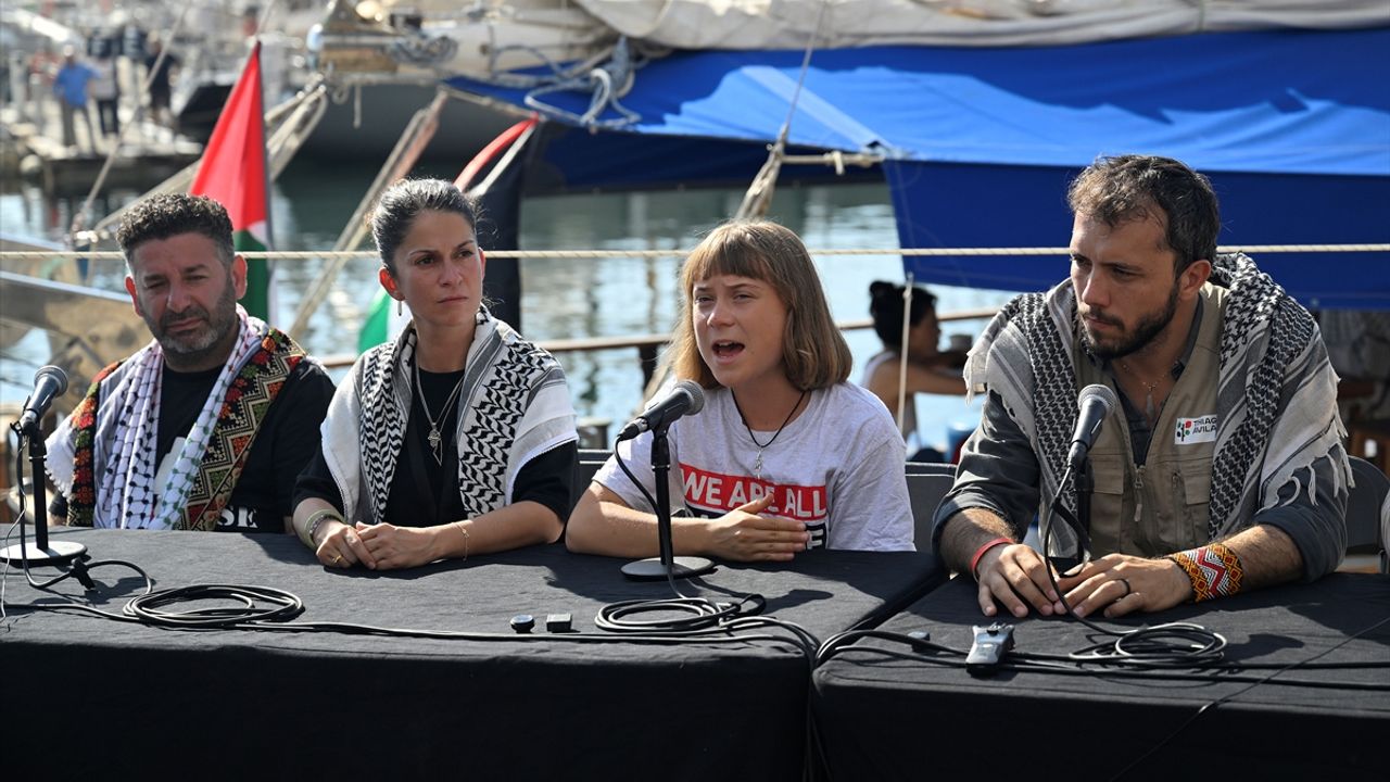 Barselona Limanı'ndaki teknelerin yola çıkmasından önce düzenlenen basın toplantısında konuşan Thunberg, 'Gazze, baskının, soykırımın ve etnik temizliğin açık bir örneğidir. İsrail öldürüyor ve tüm dünya bu soykırımı canlı izliyoruz. İnsanların telefonlarından canlı yayında soykırımı izlerken hayatlarına devam etmelerini ve hiçbir şey olmuyormuş gibi davranmalarını görmekten dehşete düşüyorum. İsrail, Filistin halkını yok etmek istiyor. İsrail'in bu yaptığı, insanları harekete geçmeye, koltuklarından kalkıp örgütlenmeye teşvik etmezse, ne teşvik eder bilmiyorum.' diye konuştu.