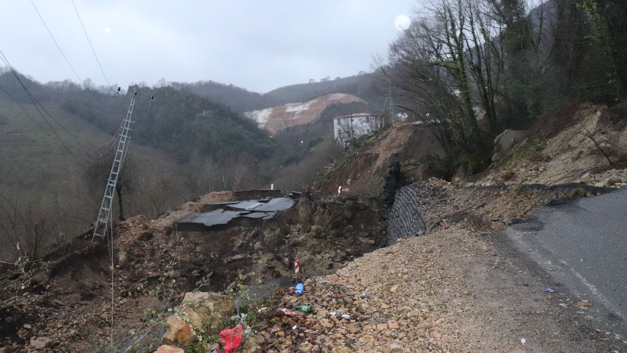 Heyelan nedeniyle Ünye ve Akkuş ilçelerini birbirine bağlayan yoldaki istinat duvarının da yıkılmasıyla yolda çökme yaşandı.