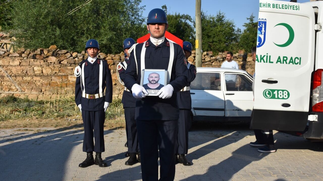 Yangına müdahale ederken şehit olan 28 yaşındaki Kocaman'ın Türk bayrağını sarılı cenazesi, Seyitgazi ilçesi Kümbet Mahallesi'ndeki babaevinde helallik alınmasının ardından törenin düzenleneceği mahalle meydanına getirildi.