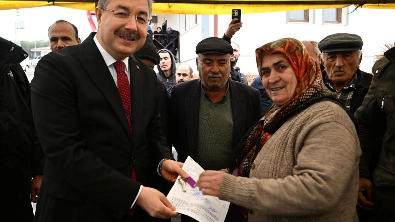 Yılmaz, konuşmasının ardından hak sahiplerine köy evlerinin anahtarlarını teslim etti.