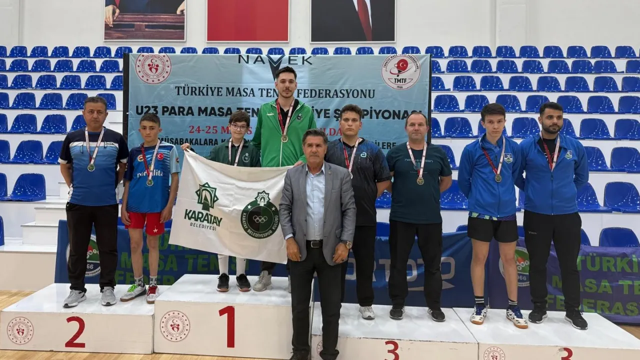 Konya'da Karatay Belediyespor Kulübü sporcusu Tahir Efe Şahin, 23 Yaş Altı Paralimpik Masa Tenisi Türkiye Şampiyonası’nda gösterdiği üstün performansla büyük bir başarıya imza attı.KONYA (İGFA) - Konya'da Karatay Belediyespor, ulusal ve uluslararası organizasyonlarda kazandığı madalyalarla ilçenin gururu olmaya devam ediyor.