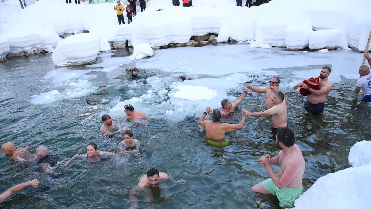 RİZE (AA) - Rize'de, Kaçkar Dağları Milli Parkı'ndaki gölde '10. Kış Yüzme Şenliği' düzenlendi.