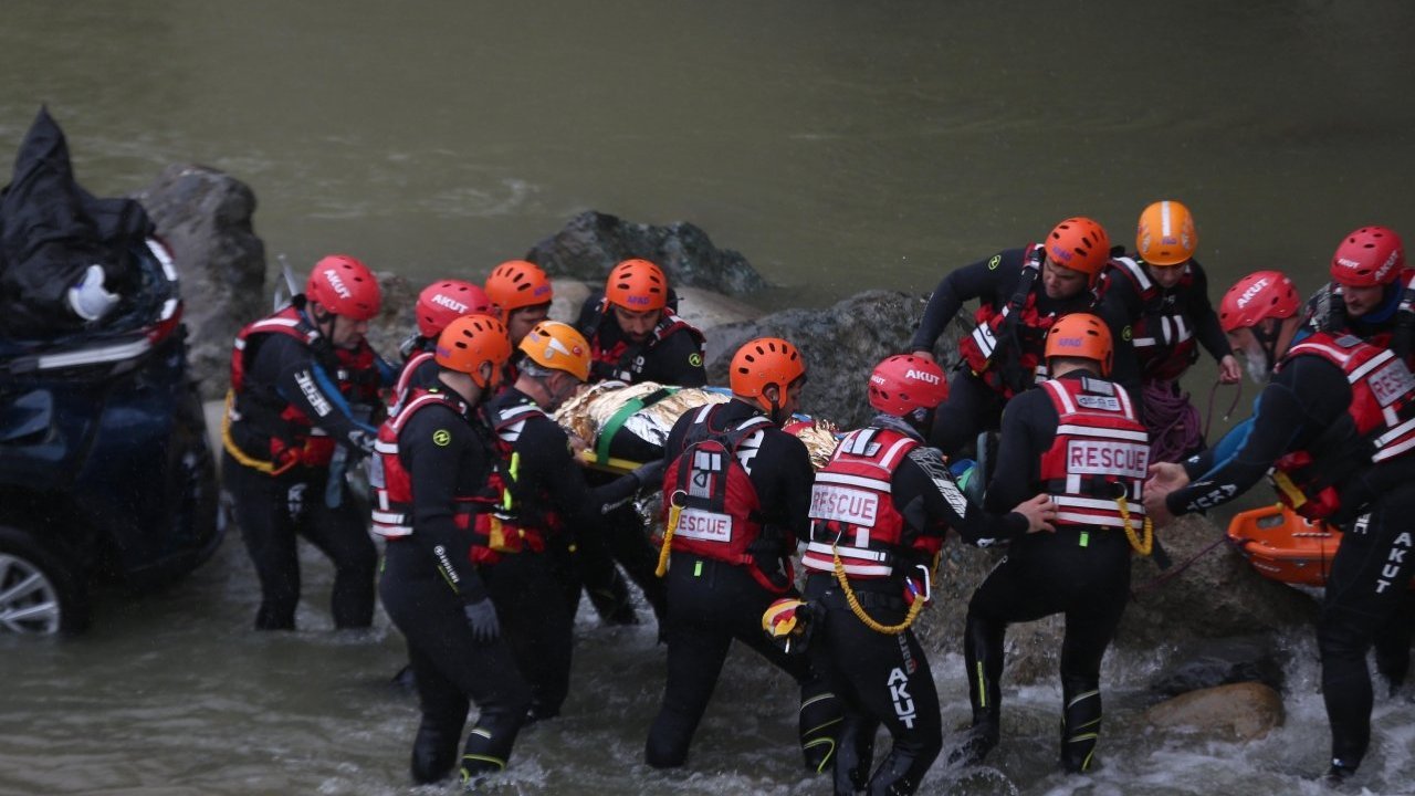 Dere içerisindeki araç ise dalgıçların yer tespitinin ardından iş makinesi yardımıyla sudan çıkarıldı.