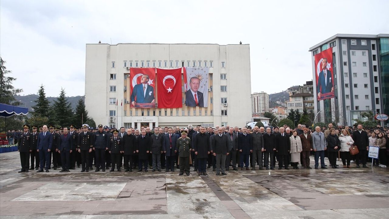Valilik önünde gerçekleştirilen tören, Vali İhsan Selim Baydaş, Garnizon Komutan Vekili Personel Albay Hüseyin Ekşioğlu ve Rize Belediye Başkan Vekili Abdulkadir Öksüz'ün Atatürk Anıtı'na çelenk sunumu ile başladı.