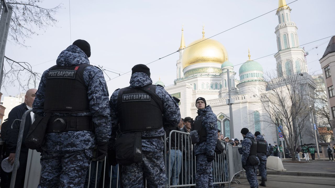 Camiler dışında namaz kılınması için ayrı alanlar da hazırlanan Moskova'da, camilerin etrafında yoğun güvenlik önlemleri alındı.