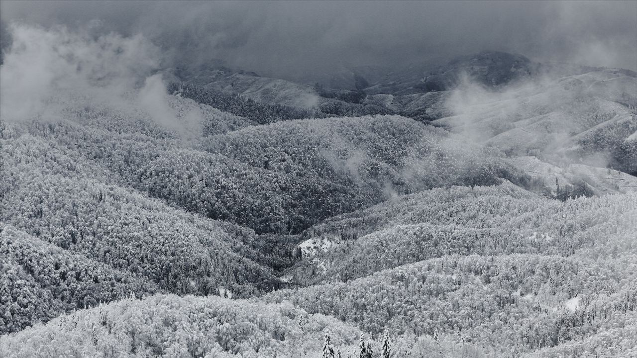 Zengin bitki çeşidinin bulunduğu bölgedeki ormanlar karla kaplandı, ilçedeki fındık bahçeleri beyaza büründü.