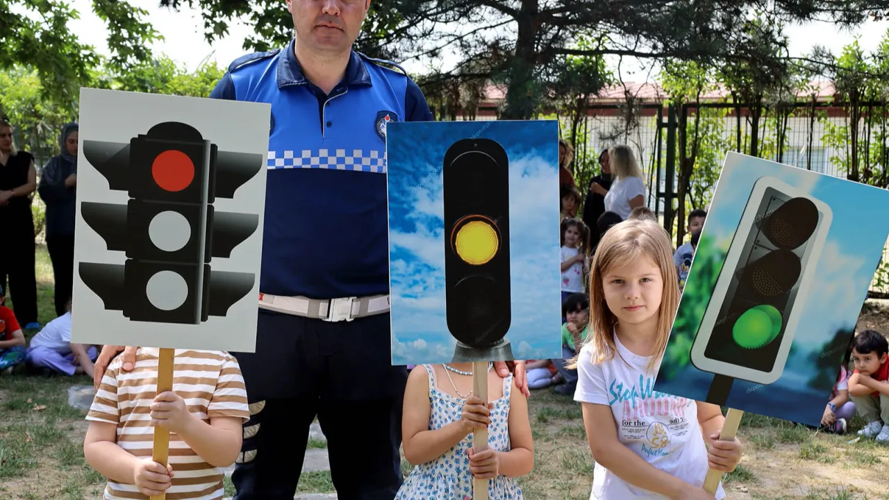 Etkinlikte, anaokulu öğrencilerine trafik kuralları hatırlatılarak farkındalık oluşturuldu.