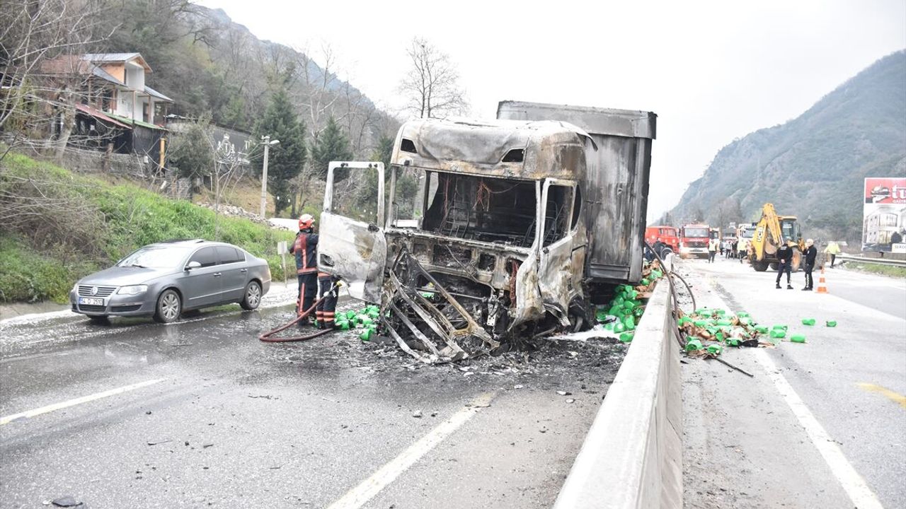 Alev alan tırdaki yangın da itfaiye ekiplerince söndürüldü.