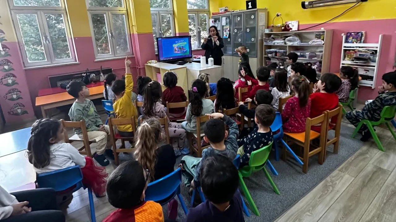 Okul öncesi eğitimi alan miniklere Çevre Koruma ve Kontrol Dairesi Başkanlığı ekipleri tarafından sıfır atık, geri dönüşüm, hayvan sevgisi ve çevre farkındalığı gibi önemli hususlarda eğitimler verildi.