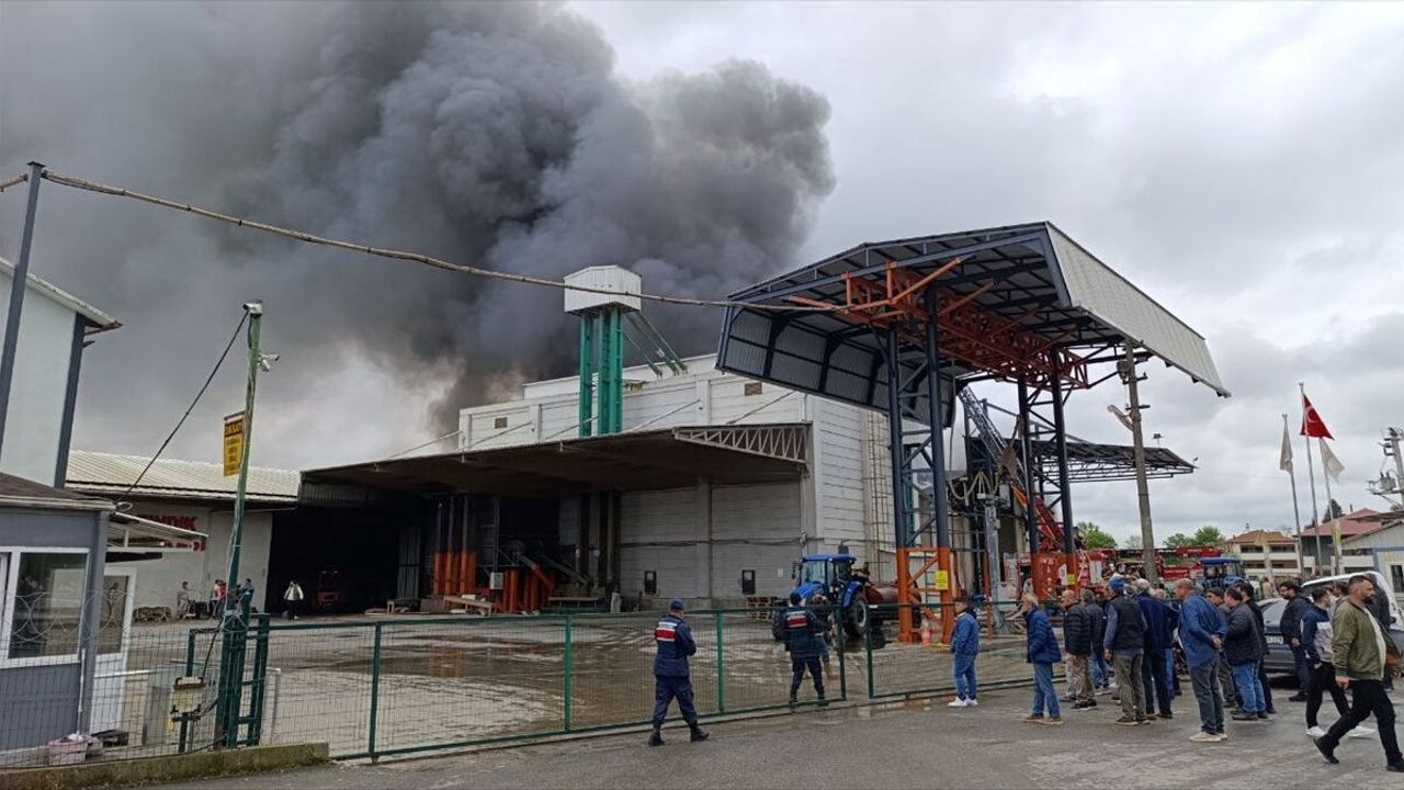 Adatepe Mahallesi'nde faaliyet gösteren fındık kırım fabrikasının depo bölümünün arka kısmında henüz bilinmeyen nedenle yangın çıktı.