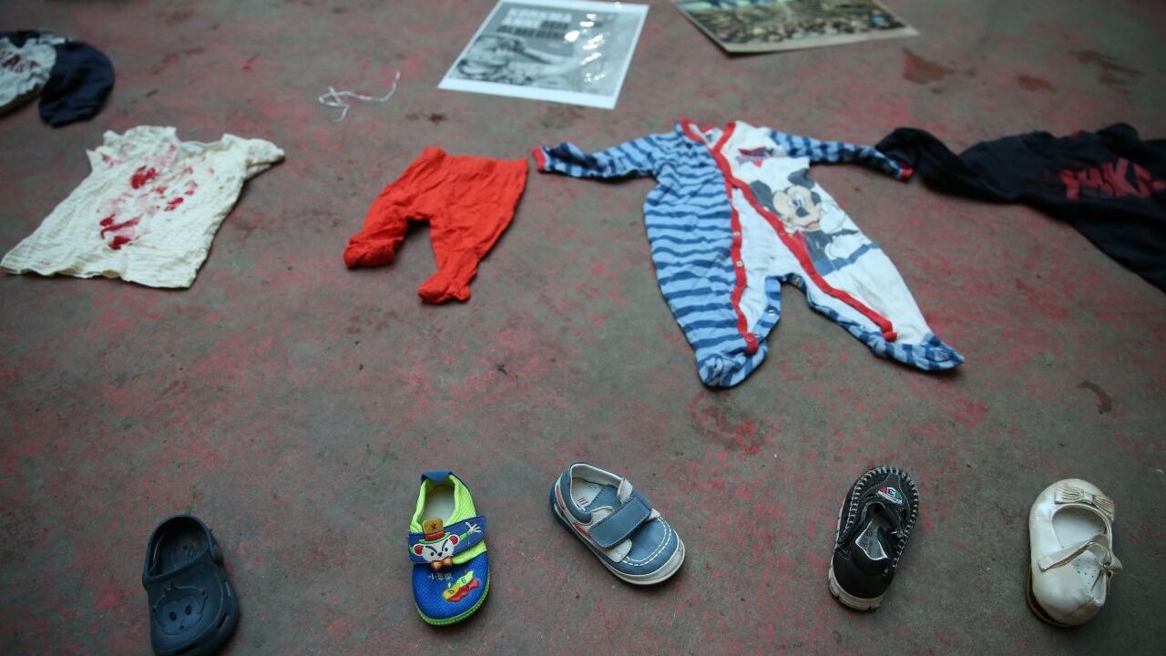 Pazar meydanına, bebek kıyafetleri, boykot ürün paketleri ve kanlı bebek çarşafları bırakan göstericiler tekbir getirdi, Gazze lehine slogan attı.