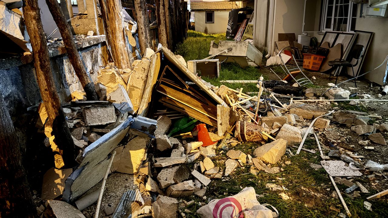 Patlama nedeniyle zemin kattaki bazı duvarlar yıkıldı, eşyalar hasar gördü.