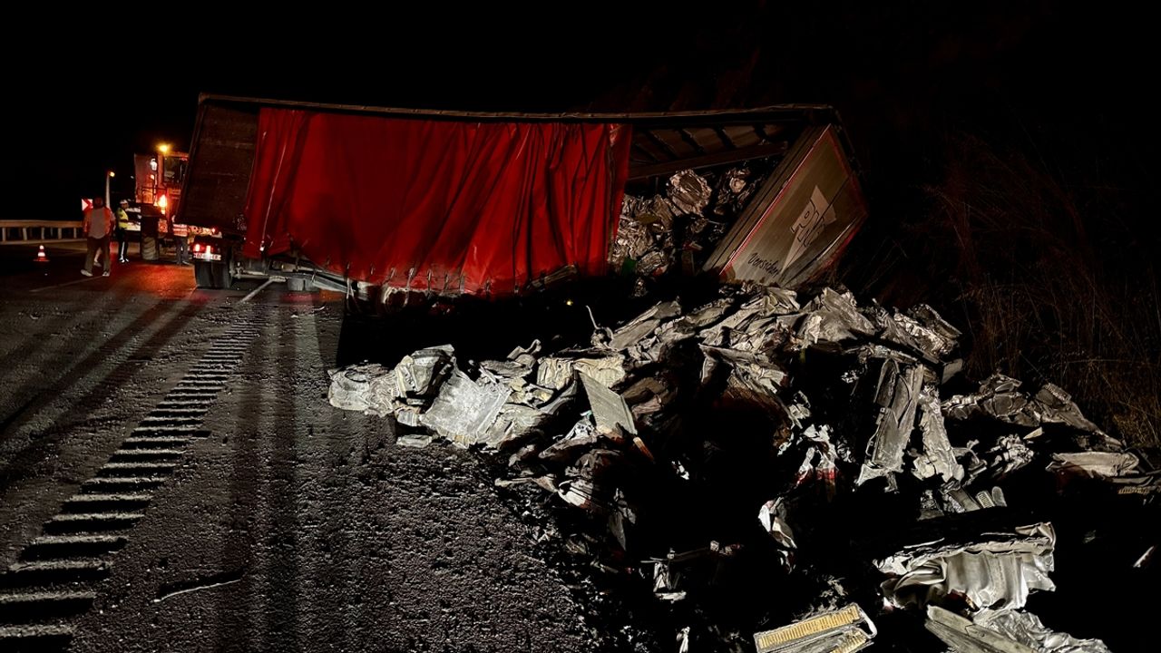 Yakup Ö. idaresindeki yabancı plakalı hurda yüklü tır, Samsun-Ankara kara yolunun Kavak geçişinde şarampole devrildi.