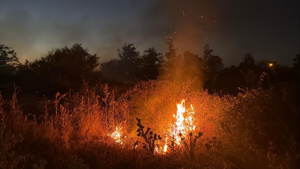 Uluçay Deresi'nin Geyikkoşan Sahili'nde denize döküldüğü noktadaki çalılık alanda akşam saatlerinde yangın çıktı.