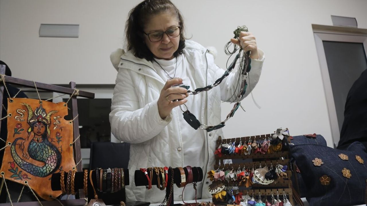 Bazı kursiyerler eski kasetlerden abajur yaparken, bazıları da deri atıklarından hediyelik bileklik üretti.