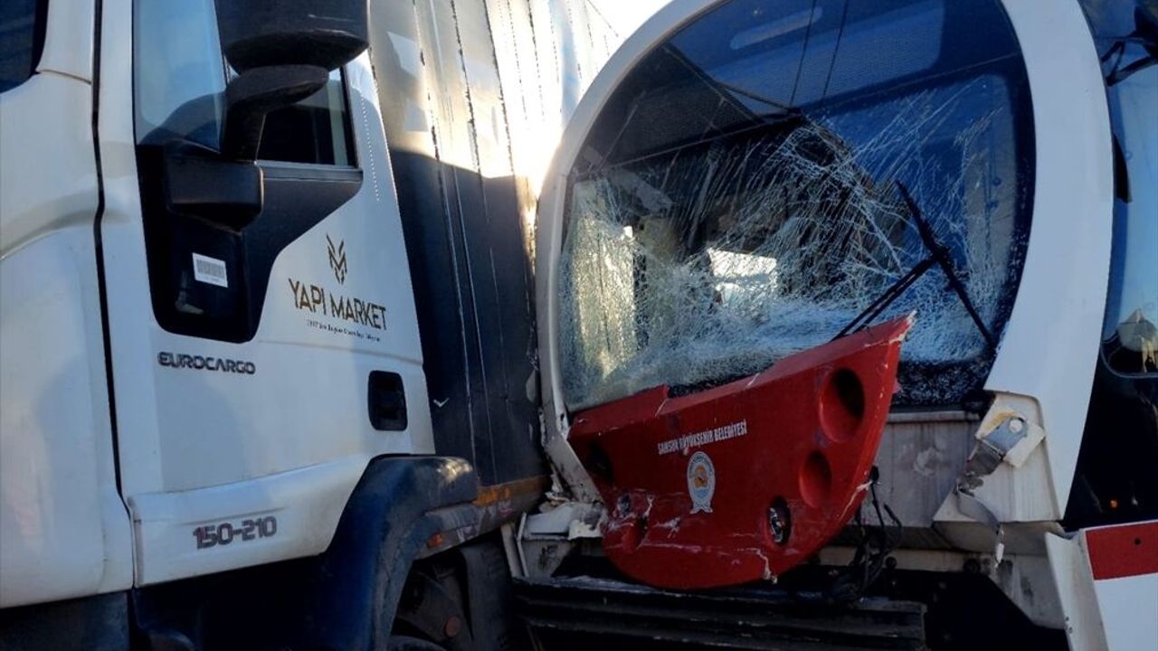 M.Ç'nin (45) kullandığı 55 AIR 612 plakalı kamyon, İlkadım Sanayi Sanayi Sitesi tramvay durağı yakınında ray güzergahından karşıya geçerken Büyükşehir Belediyesine bağlı Samsun Hafif Raylı Sistem'e (SAMULAŞ) ait vatman R.S. yönetimindeki tramvayla çarpıştı.
