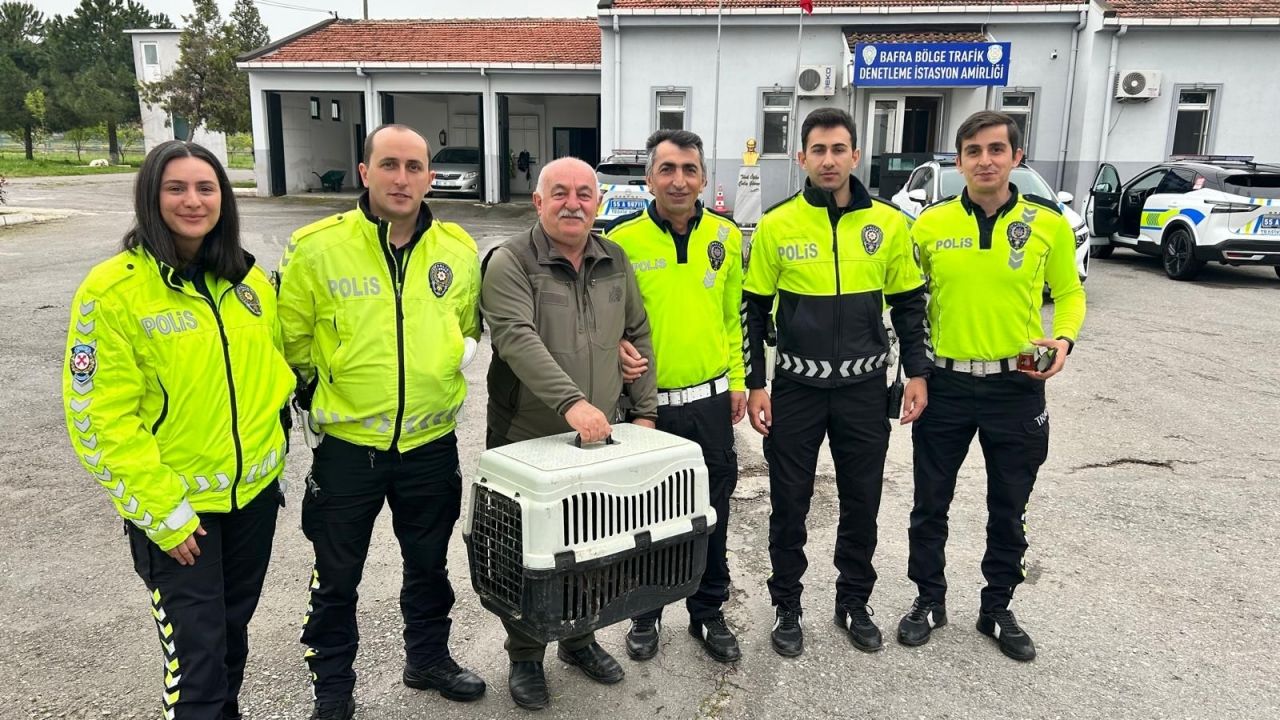 İl Emniyet Müdürlüğüne bağlı Bölge Trafik Şube Müdürlüğü ekipleri, Samsun-Sinop kara yolundaki Bafra Bölge Trafik İstasyonu önünde denetim yaptığı sırada yaralı halde bir kuş gördü.