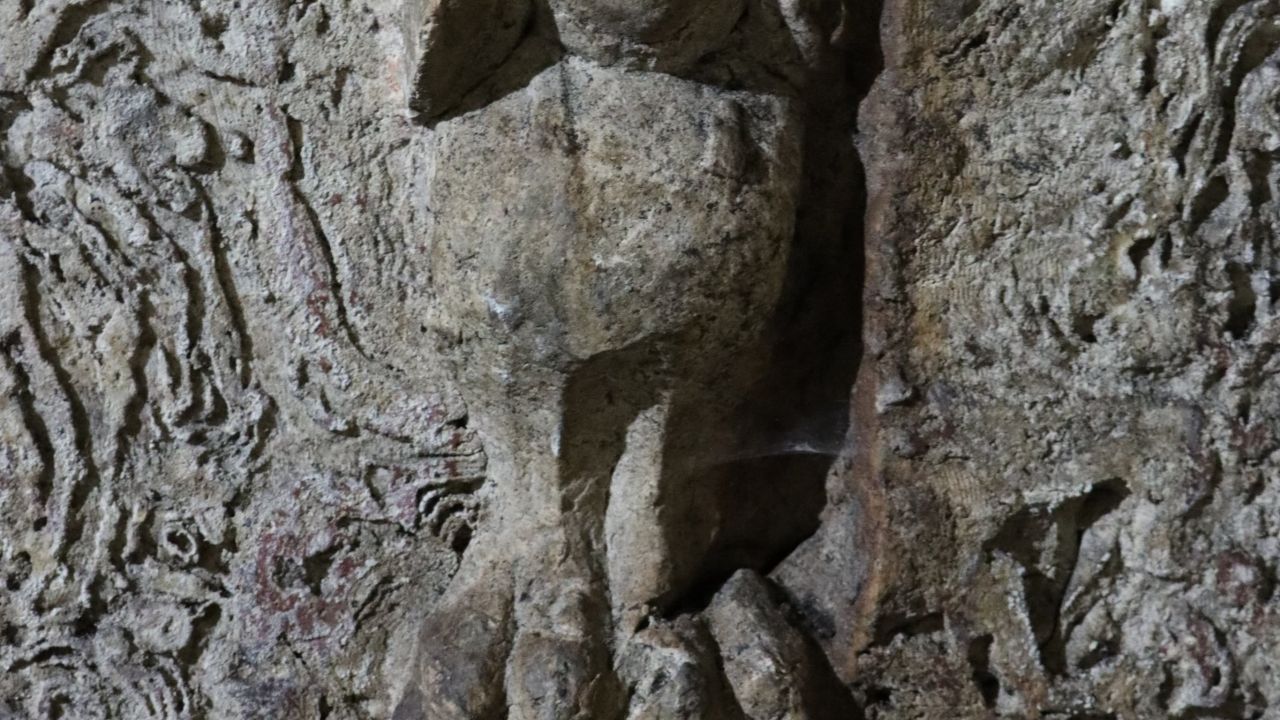 "Kaya mezarı, tek odalı bir yapıya sahip olup odanın bir duvarında sol kolu üzerine uzanmış bir erkek rölyefi yer alıyor. Diğer iki köşede ise iki kanatlı kadın rölyefleri bulunuyor. Odanın farklı yerlerinde başka rölyefler de var. Giriş kapısının iç kısmında, aşı boyasıyla işlenmiş ancak tahribat nedeniyle okunamayan bir yazıt yer alıyor. İlk kez kayıt altına alınan bu kaya mezarı, iç süslemeleri ve yazıtıyla benzerlerinden farklı bir görüntüye sahip."