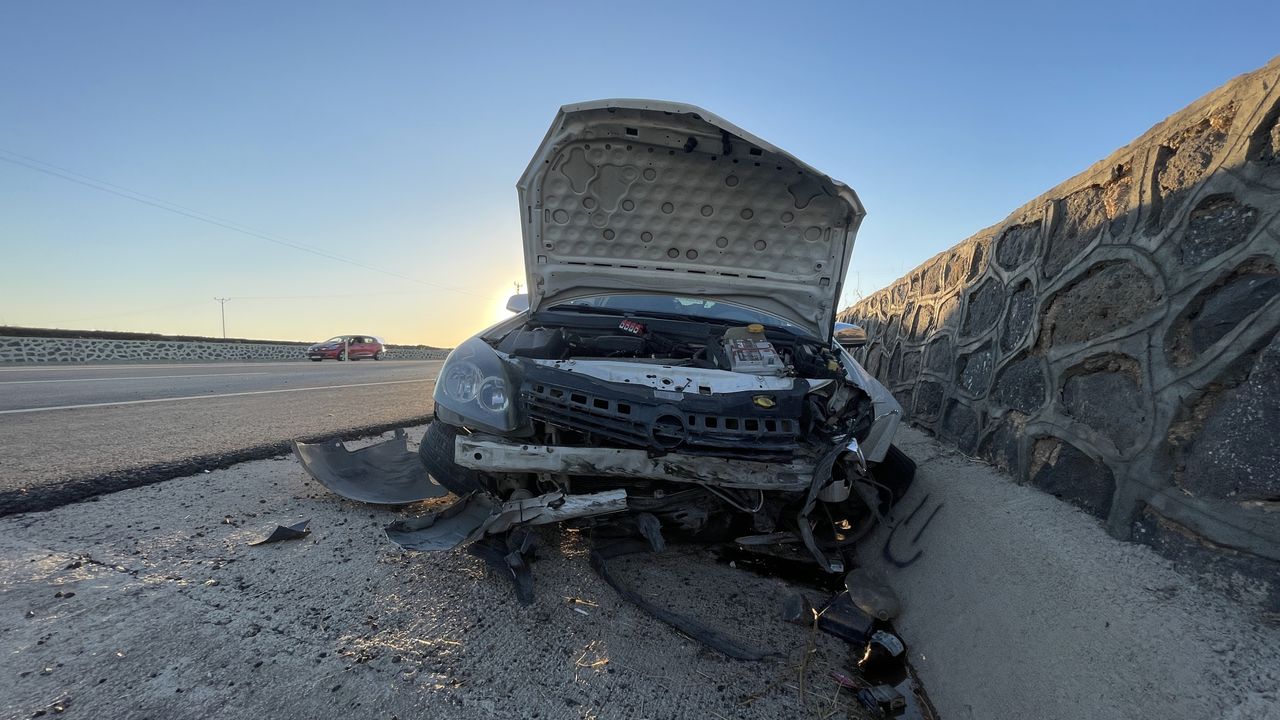 M.O. idaresindeki 41 EG 586 plakalı otomobil, Siverek-Kahta kara yolunun 20'nci kilometresi Kalınağaç Mahallesi kavşağında karşı yöne geçerek istinat duvarına çarptı.