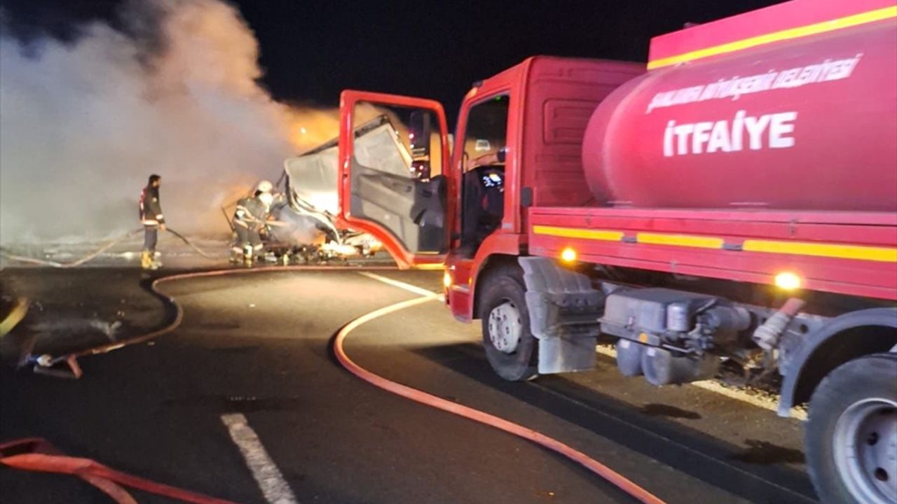 Şanlıurfa-Gaziantep Otoyolu'nun 50. kilometresinde, Bünyamin Özdemir idaresindeki 27 EM 611 plakalı motor yağı yüklü tır, henüz belirlenemeyen nedenle alev aldı.
