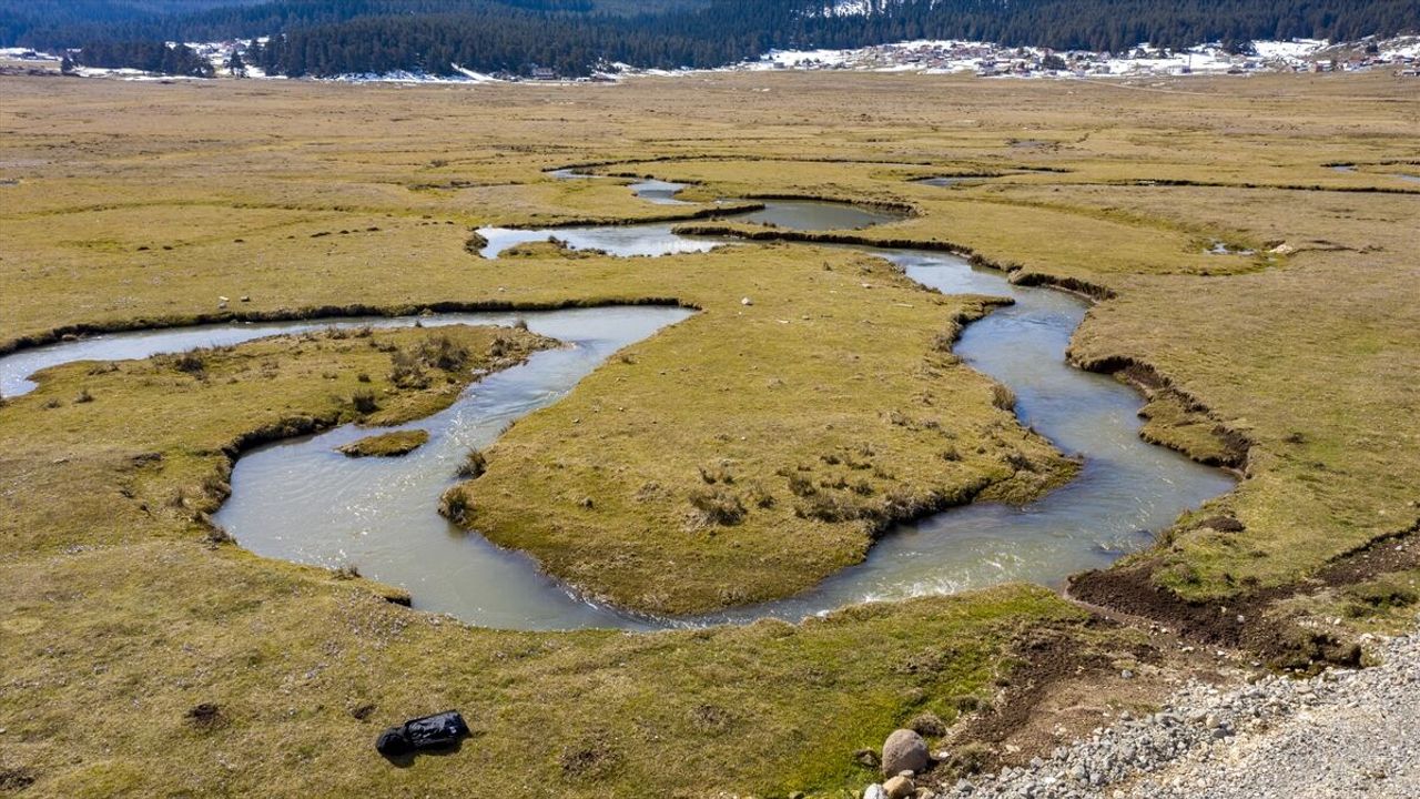 BOLU (AA) - Doğal güzellikleriyle ünlü Bolu'da yer alan Sarıalan Yaylası'nda menderesler, karların erimesinin ardından suyla dolarak ayrı bir güzelliğe büründü.