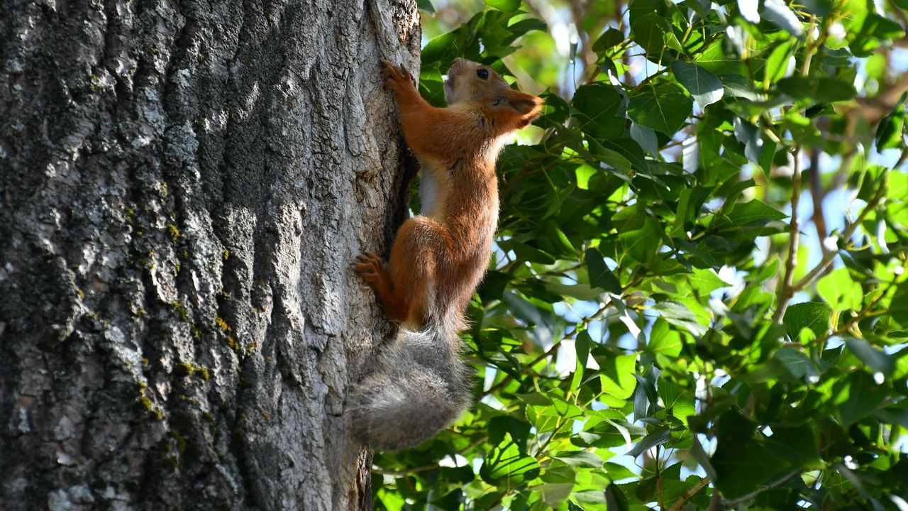 İnönü Mahallesi'ndeki Harun Hayali Millet Bahçesi'nde ise kızıl sincapların ağaç dallarında gezinip zaman zaman da ağaç kabuklarıyla beslenmesi görüntülendi.