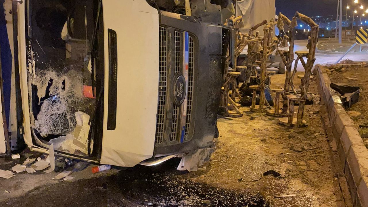 Çarpışmanın etkisiyle kamyonet devrildi.