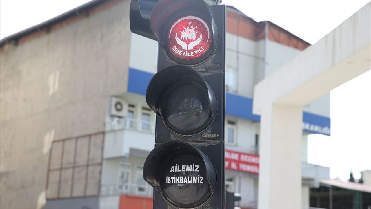 "2025 Aile Yılı" logosu bazı kavşaklardaki kırmızı ışıklara yansıtılırken, sarı ve yeşil ışıklar ise "Ailemiz İstikbalimizdir", "Aile Güvendir" ve "Aile Geleceğimiz" gibi ailenin önemini anlatan ifadelerle yanıp sönüyor.