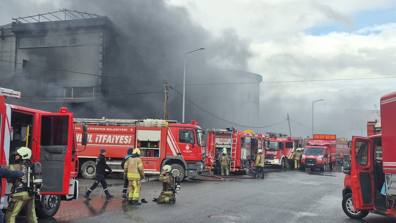İSTANBUL (AA) - Silivri'de bir fabrikada çıkan yangına itfaiye ekiplerince müdahale ediliyor.
